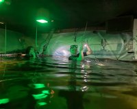 Es ist ein großer See mit einer maximalen Tiefe von 45 Metern. Es gibt mehrere Objekte, zu denen man tauchen kann, angefangen bei einem Auto am Eingang und einem "Wald" aus Pfählen.