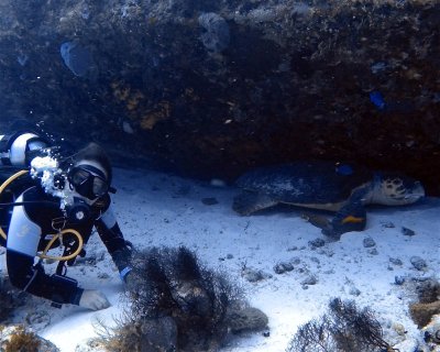 This is a wreck of a ferry-style sunken ship Mama Viña. The wreck itself is not very big and at a depth of 28m; giving us the perfect bottom time for a complete tour.