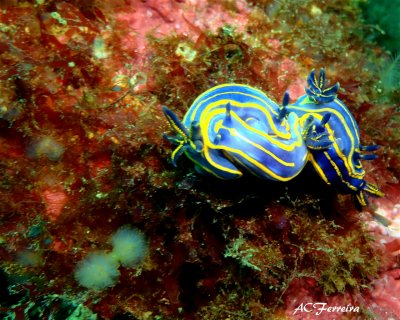This is one of the most amazing and versatile spots in Sesimbra. There is a big canyon that has walls full of colorful life, like yellow sponges, nudibranchs, and anemones.