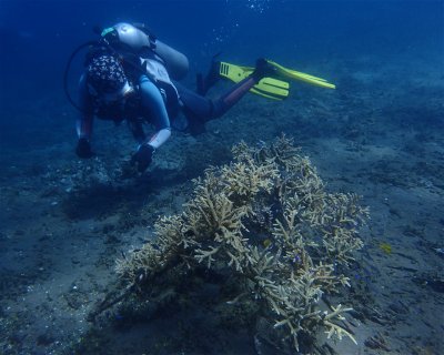 Artificial coral reef placed on the sandy bottom with depths varying from 10 meters to 25 meters. The basis of the coral growth is made of rectangular concrete arranged like a small pyramid. It is one of the best places to witness a successful artificial reef.