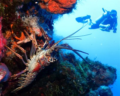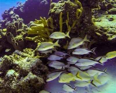 Right at the entrance of the Puerto de Abrigo marina, a wall drop off starts at 45 ft/15m of depth. The wall extends over one kilometer North to Cantarel, past the Coral Princess hotel. Frequent strong currents take divers flying over the reef, sometimes finishing the dive in another site.