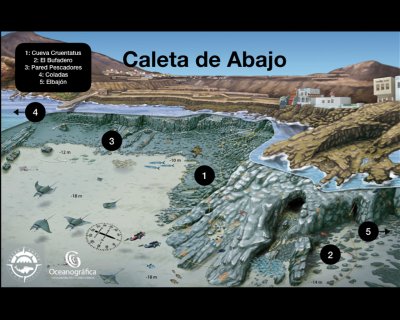 Tufia (Playa de Tufia) located just north of the Airport. A small beach/bay is accessed via a well maintained pedestrian road from the upper car park down to waters edge, this is quite a steep hill on the way back up, it will test your aerobic abilities for sure ;-) Depth ranges from 15-21m, recommend Open water +.