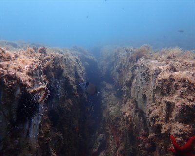 At the foot of the Commandos training center in Collioure, the relief is very pronounced. Faults, overhangs, cavities and rocky outcrops generate currents that encourage fish of all sizes to congregate.