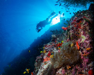 The legendary Banana Reef! The reef is big and banana-shaped with caves and overhangs. The reef top is between 3 to 8 meters from where it drops to 30+ meters.