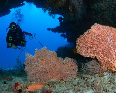 Only suitable for experienced divers who feel comfortable with deep dives in potentially strong currents. Nitrox recommended. The rewards are great! The northern part of the thila is covered by overhangs and gorgeous coral life.