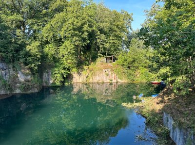 This dive site is an old marble quarry located in the village of Vodelée, near Philippeville. Pink and gray marble was mined here, and every now and then you can still see some underwater.