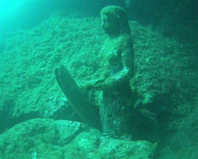 The site consists of a series of rocks running lengthwise from north to south at a depth of 8 to 18 meters. At the southern end of this rocky bar, surrounded by posidonia, you'll find a statue of a mermaid.