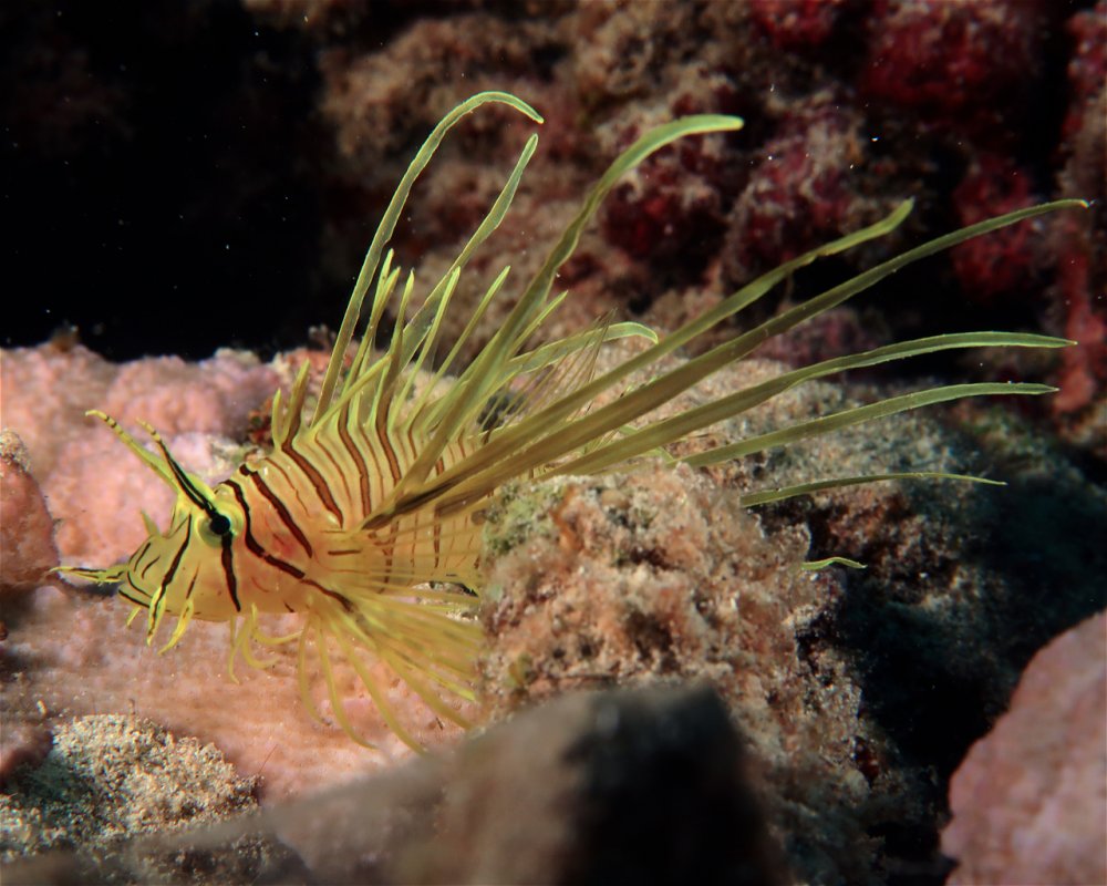 Coral reefs around the Cook Islands host abundant reef fish: parrotfish, butterflyfish, surgeonfish, grouper and snapper are common on most fringing reefs and passes. Shallow gardens hold cleaner wrasse, damselfish and lionfish; bommies and drop-offs attract large schools of fusiliers and jacks.