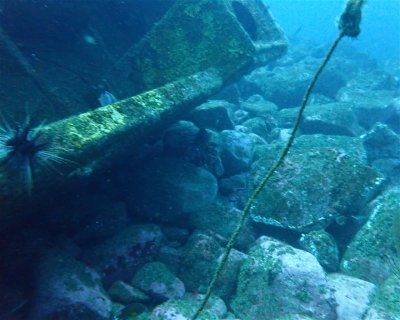 The wreck is a Chinese trawler lying on its side in a North–South orientation, with the bottom at 32 m and the top of the deck at 26 m. There is no mast. Both the cabin and the gangway can be crossed safely. The wreck’s holds can be visited by Advanced Wreck divers.
