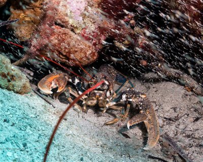 Näet alastulokatkarapuja, mustekaloja, hummereita, ja jos katsot siniseen, voit nähdä merikampela- ja salemakantoja.